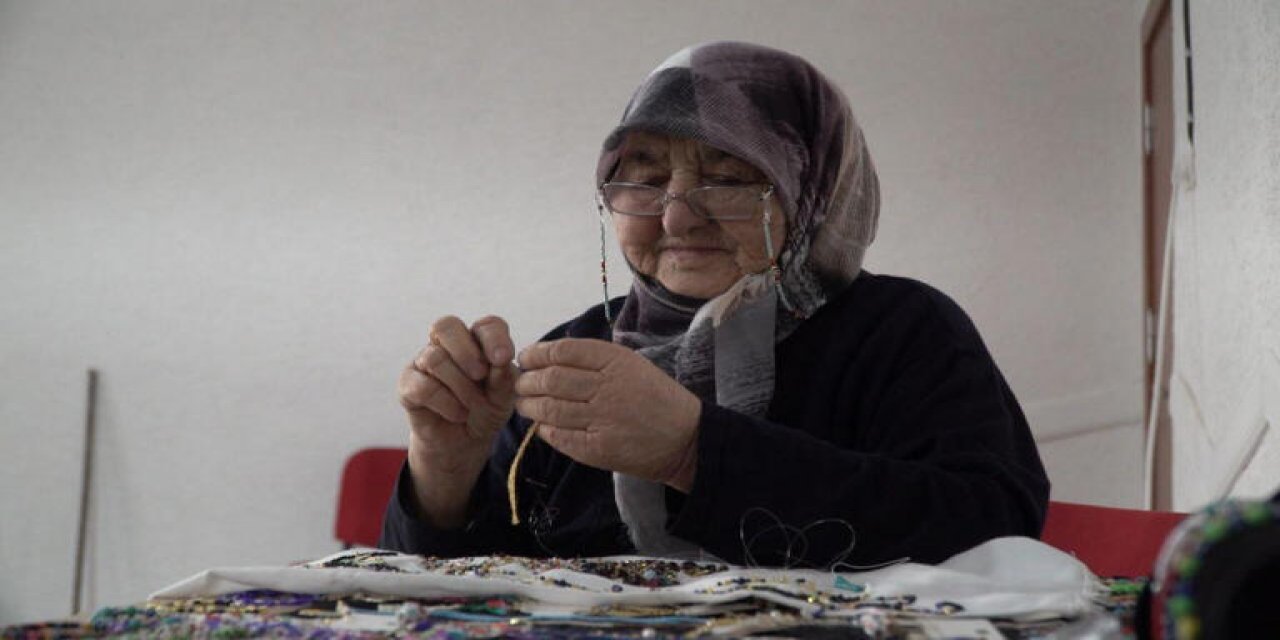 “Bir gün komşum geldi ve bana ‘Köy yaşam merkezi açılıyor. Gel seni de oradaki kursa yazdıralım’ dedi. Ancak ben ilk başta istemedim. Ben 80 yaşındayım, bu yaştan sonra okula gidersem köydekiler beni ayıplarlar diye düşündüm. Fakat komşum beni ikna etti ve ben de kaydımı yaptırdım. Kaydımı yaptırmama rağmen gitmeyi pek düşünmüyordum. Okulların açıldığı gün 6 Eylül’de komşum kapımı çalıp ‘Hadi gidiyoruz’ dedi. O gün bugündür köy yaşam merkezinde takı kursuna devam ediyorum. Bir gün bile derslerimi aksatmadım.