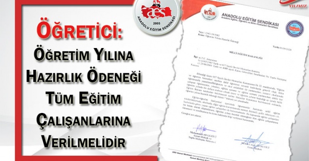 Anadolu Eğitim Sendikası olarak; Milli Eğitim Bakanlığına başvurarak, 657 Sayılı Devlet Memurları Kanununun Ek 32’nci maddesinde, ”Eğitim ve öğretim hizmetleri sınıfına dahil öğretmen unvanlı kadrolarda görevli olup; fiilen öğretmenlik yapanlara verilen Öğretim yılına hazırlık ödeneğinin tüm eğitim çalışanlarına verilmesini talep ettik. Söz konusu başvuruda; eğitim çalışanları için bunun bir hak olduğunu adalet açısından yerinde bir uygulama olacağını belirttik. Yıllardır toplu sözleşmelerde atlanılan, yasa tasarılarında görmezden gelinen konuda adıma atılmasının takipçisi olacağımızı, konu ile ilgili vicdani bir hareket içinde bulunulmasının elzem olduğunu belirttik.
